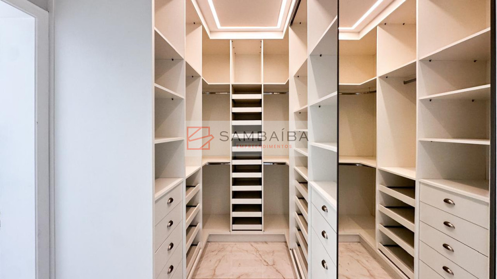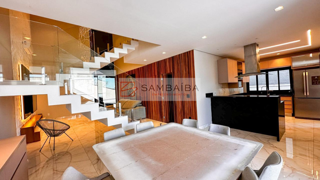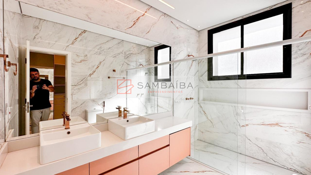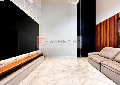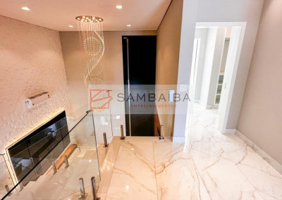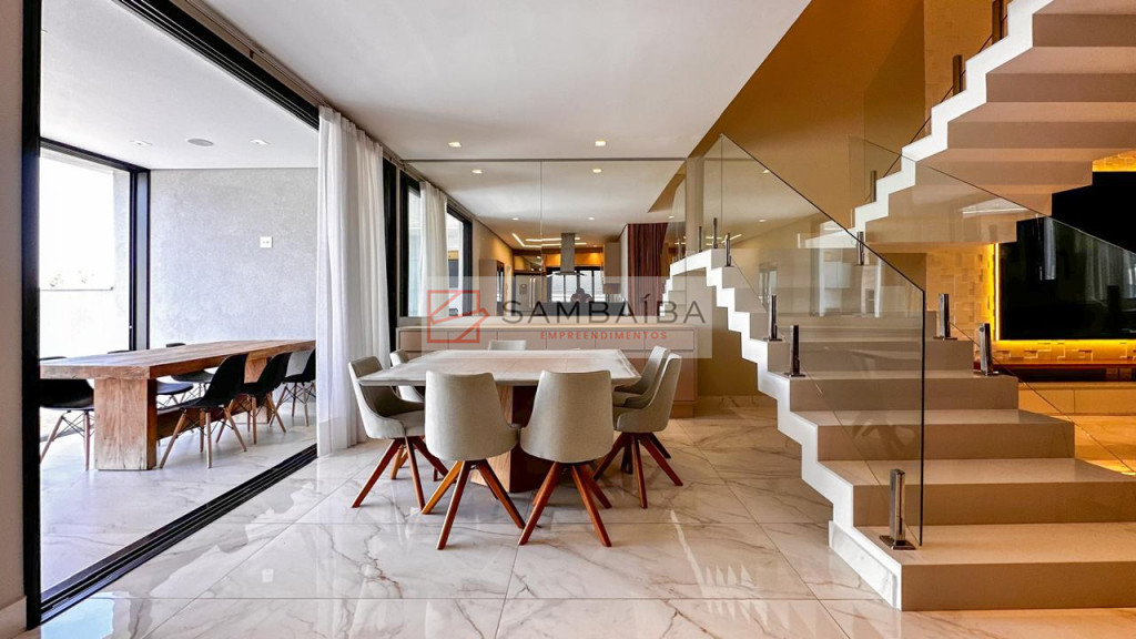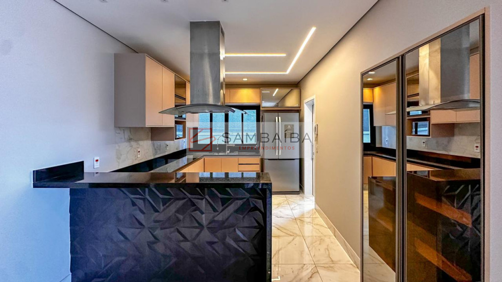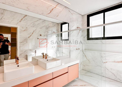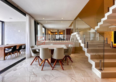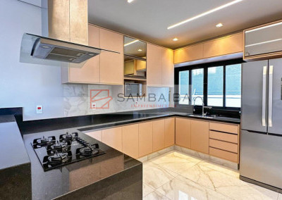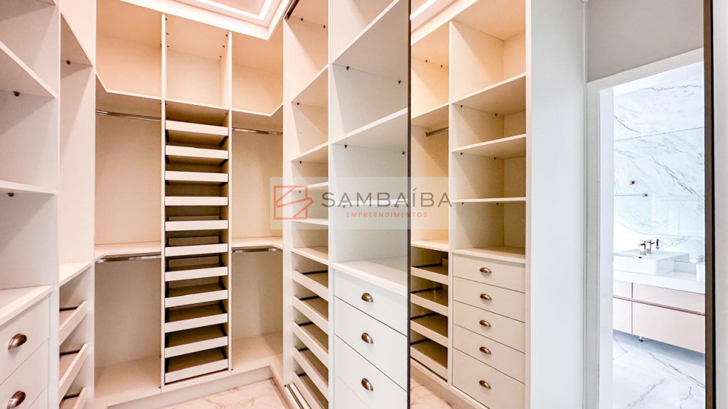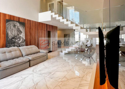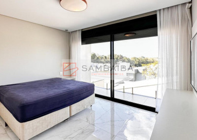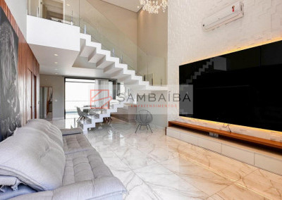 Sobrado com 4 suítes todas com armários e ar condicionado, sendo uma suíte no primeiro pavimento podendo ser revertida para escritório.