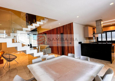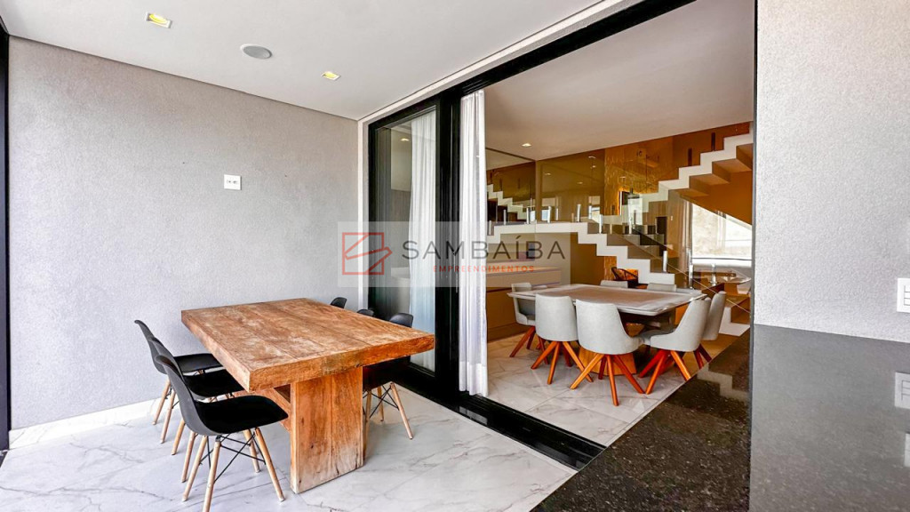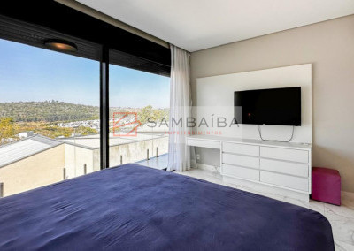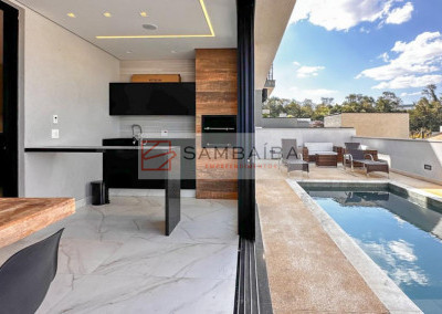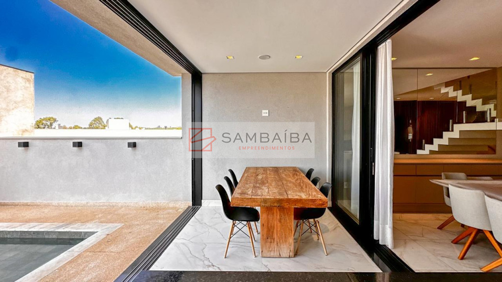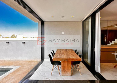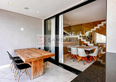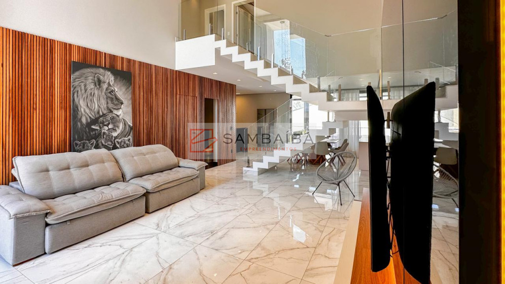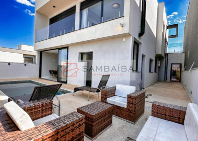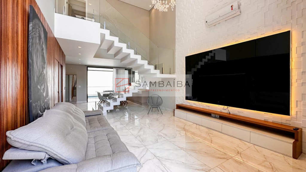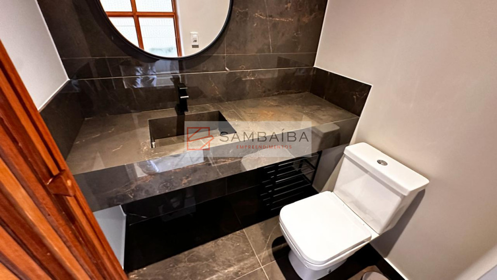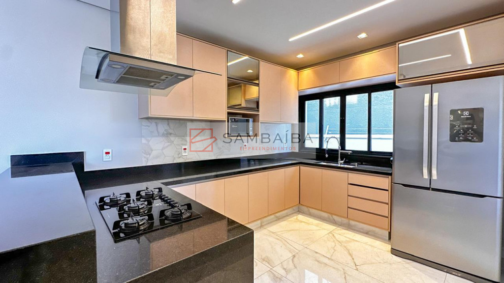 Sobrado com 4 suítes todas com armários e ar condicionado, sendo uma suíte no primeiro pavimento podendo ser revertida para escritório.