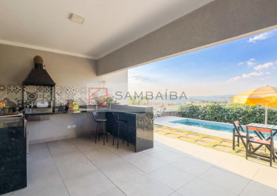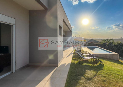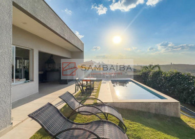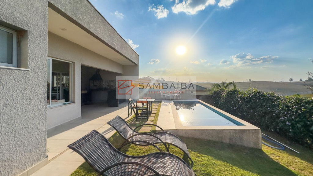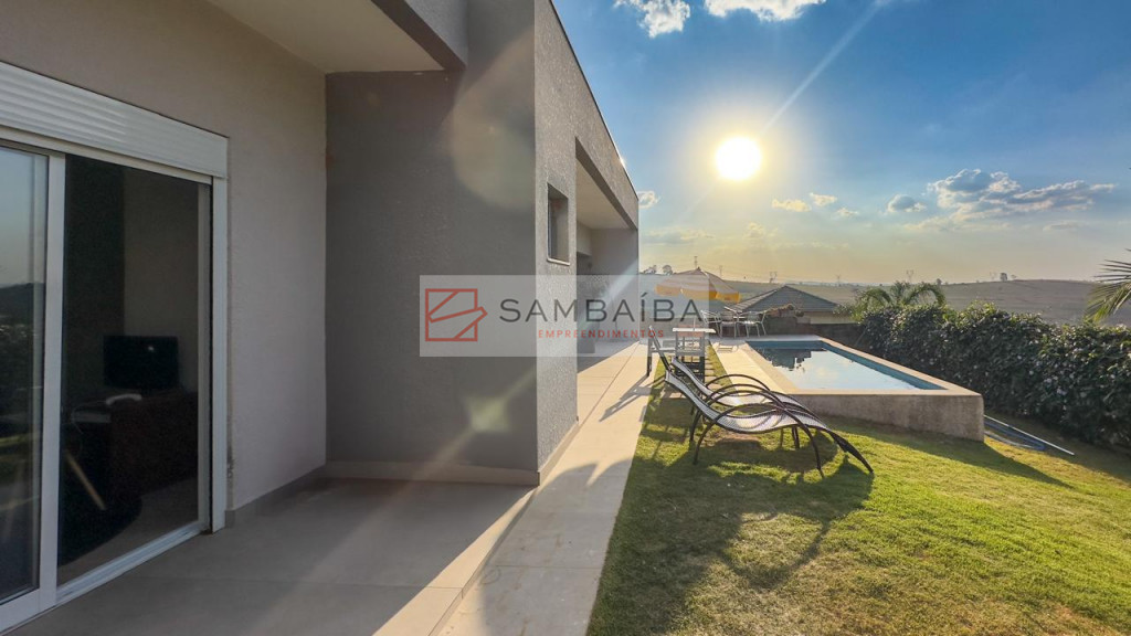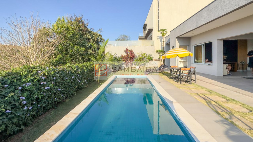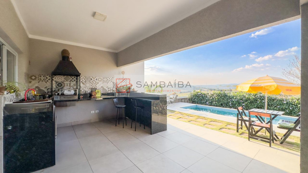 Casa totalmente térrea com 3 suítes, sala dois ambientes, cozinha americana com armários planejados, planta inteligente moderna e funcional, ambientes integrados, piscina de alvenaria, com uma vista maravilhosa, jardim, e localizada bem próximo do clube do condomínio.
